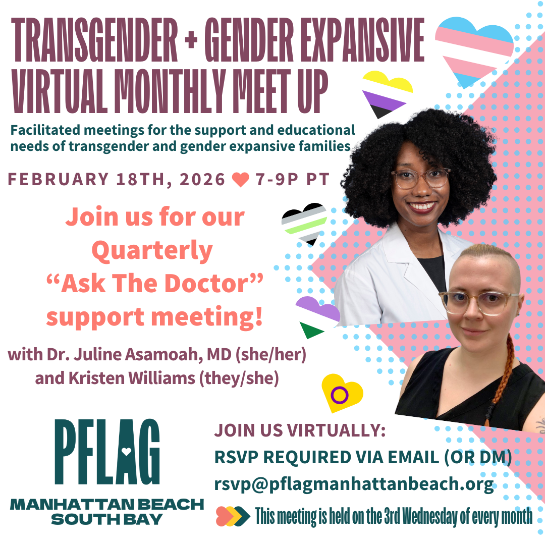 February 2026 Virtual Transgender + Gender Expansive Support Group Meeting