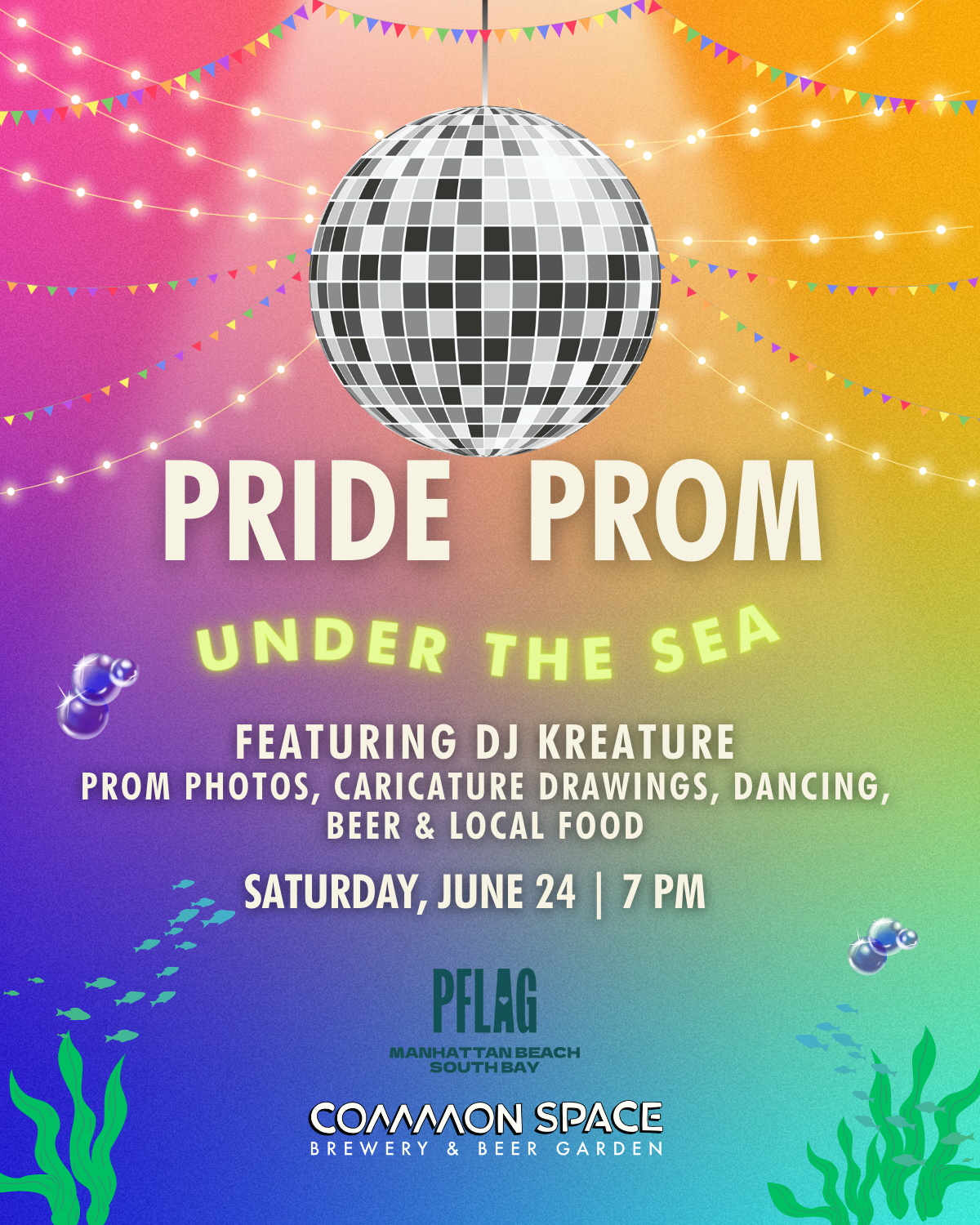 Join us on Saturday, June 24th for PRIDE PROM at Common Space! Dancing with DJ Kreature, Prom Photos, Caricature Drawings, Dancing, Beer, Food Trucks, and MORE! No tickets or RSVP required!